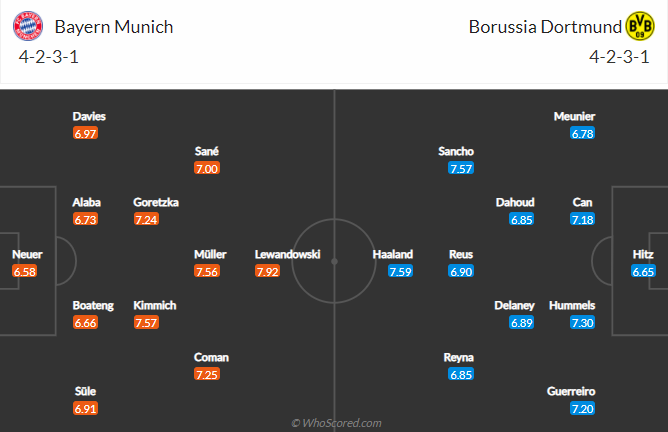 Dù vẫn có một số cầu thủ dính chấn thương nhưng dự kiến cả Bayern Munich và Dortmund đều có được đội hình ưng ý nhất ở trận derby Der Klassiker lần thứ 129 sắp tới. Trong 128 lần chạm trán nhau trước đây tính trên mọi đấu trường, Bayern thắng 66, hòa 33, thua 33 trận, ghi 245 bàn và để thủng lưới 154 lần.
