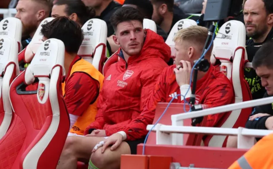 Bản hợp đồng kỷ lục 105 triệu bảng của Pháo thủ đã bị thay ra sau khi kết thúc hiệp một trận derby Bắc London giữa Arsenal với Tottenham. Theo đó, Declan Rice cảm thấy khó chịu ở lưng và không thể tiếp tục thi đấu. Tuy nhiên, sau khi góp mặt trên băng ghế dự bị, tiền vệ người Anh lại xuất hiện với một miếng băng ở bắp chân trái, với vẻ mặt cau có kèm theo những cái lắc đầu liên tục. Điều này đã dấy lên lo ngại về một chấn thương không đơn giản với cựu đội trưởng của West Ham.