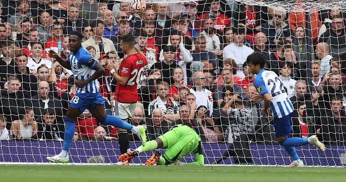 Dù là bên tạo ra những cơ hội đầu tiên nhưng Man Utd lại bất ngờ để thủng lưới ở phút 20. Xuất phát từ đường đánh biên khá cơ bản của Brighton, bóng được Simon Adingra căng ngang như đặt cho Danny Welbeck đệm bóng mở tỷ số.