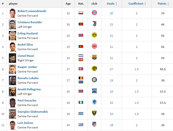 Trên bảng xếp hạng Chiếc giày vàng châu Âu, Haaland vươn lên xếp thứ 3, áp sát vị trí thứ 2 của Cristiano Ronaldo với chỉ 2 bàn kém hơn. Dẫu vậy, rất khó để cả Haaland và Ronaldo cạnh tranh vị trí số 1.