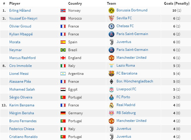 Top ghi bàn Champions League 2020/21