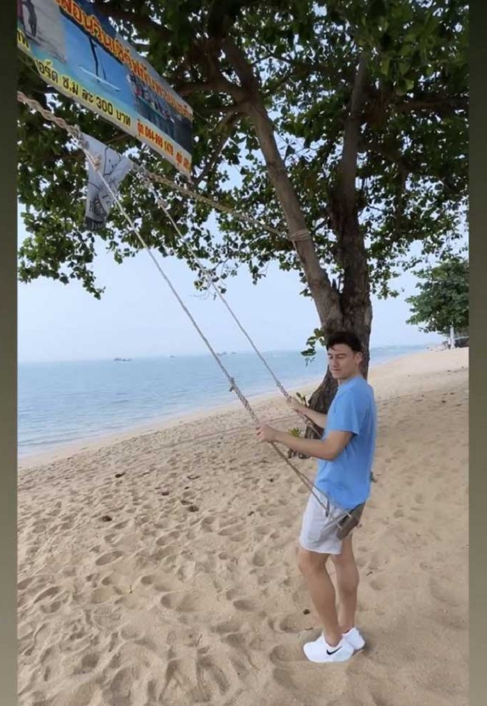 Giữa lúc vụ xung đột giữa Văn Lâm và Muangthong chưa được giải quyết dứt điểm, thủ môn của đội tuyển Việt Nam bất ngờ đăng ảnh nghỉ ngơi, ngồi xích đu thư giãn trên bãi biển. Đi cùng Văn Lâm là bạn gái.