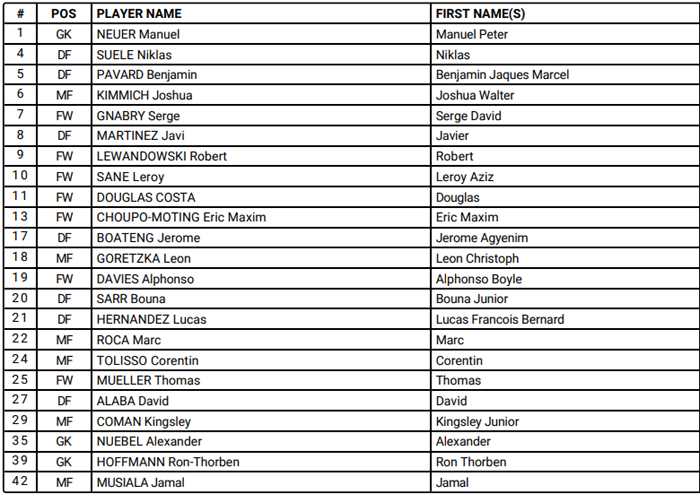 Danh sách cầu thủ tham dự FIFA Club World Cup 2020 của Bayern Munich