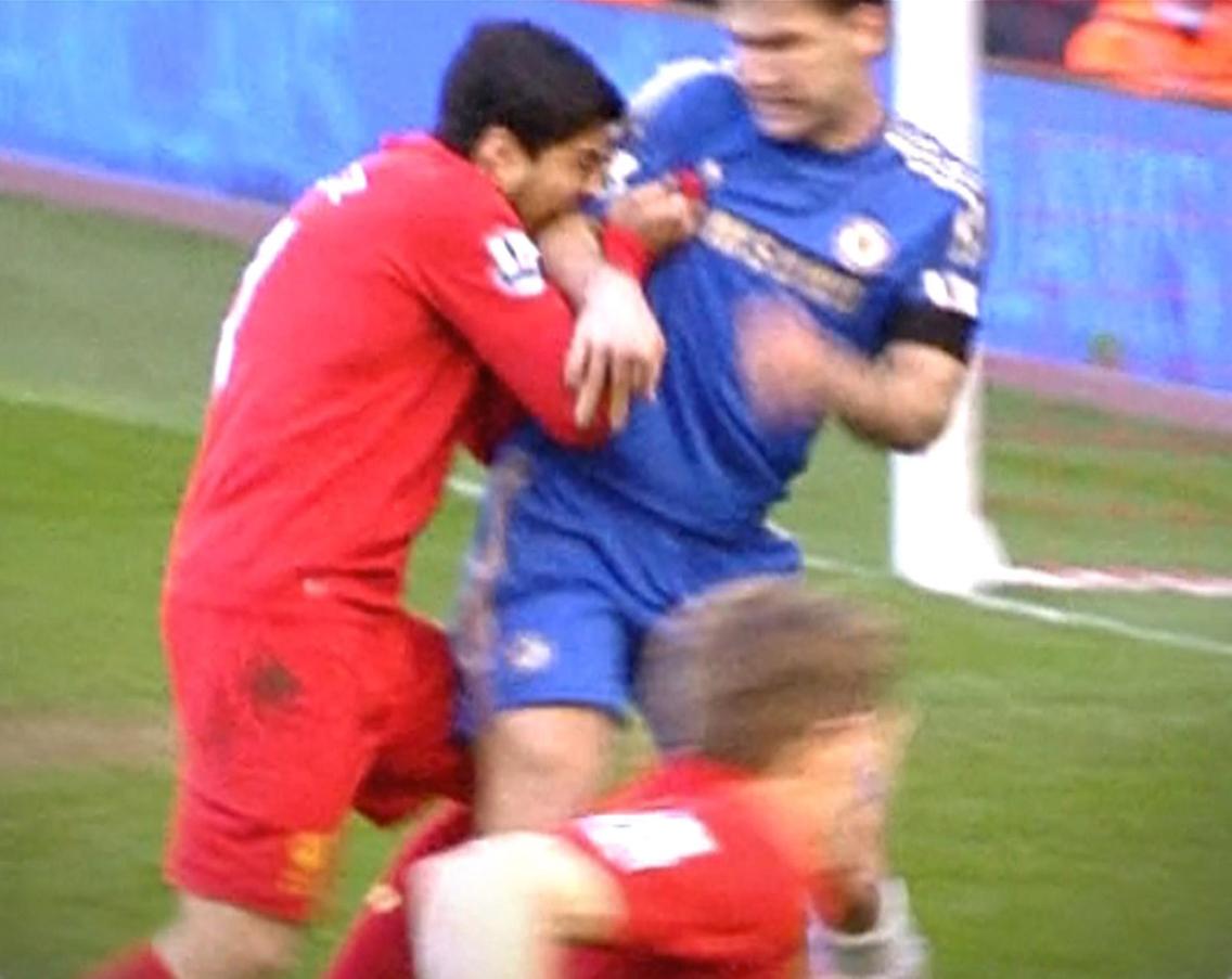 Suarez từng bị treo giò 10 trận vì cắn Ivanovic