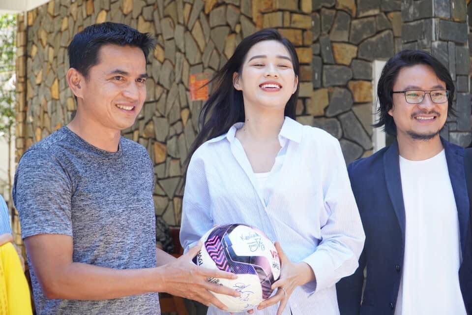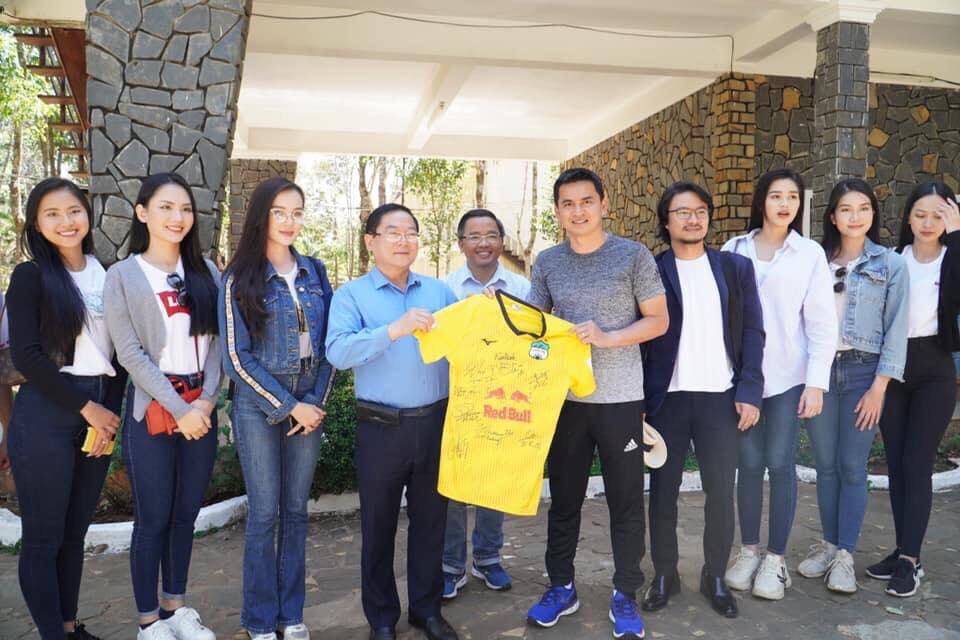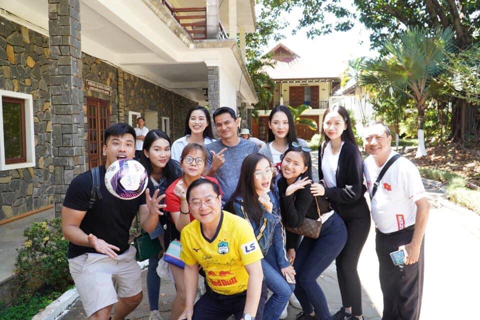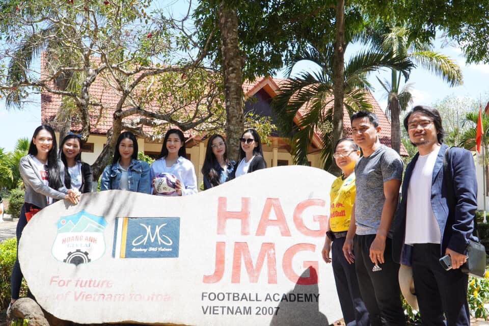 Chiến lược gia người Thái Lan tỏ ra rất vui vẻ khi các người đẹp đế thăm đại bản doanh đội bóng phố Núi. HLV Kiatisak dẫn Hoa hậu đi thăm thú một vòng từ học viện HAGL-JMG đến phòng truyền thống của CLB. Ông cũng tặng trái bóng có chữ ký của các cầu thủ HAGL cho các người đẹp.