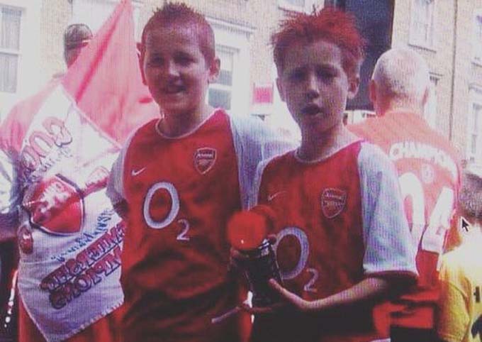Harry Keane (trái) khi đó còn là một cậu bé đã gào thét ăn mừng chức vô địch của .... Arsenal