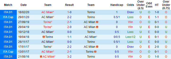+ Lịch sử đối đầu AC Milan vs Torino