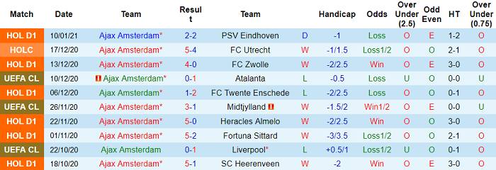 - Thống kê 10 trận gần nhất của Ajax