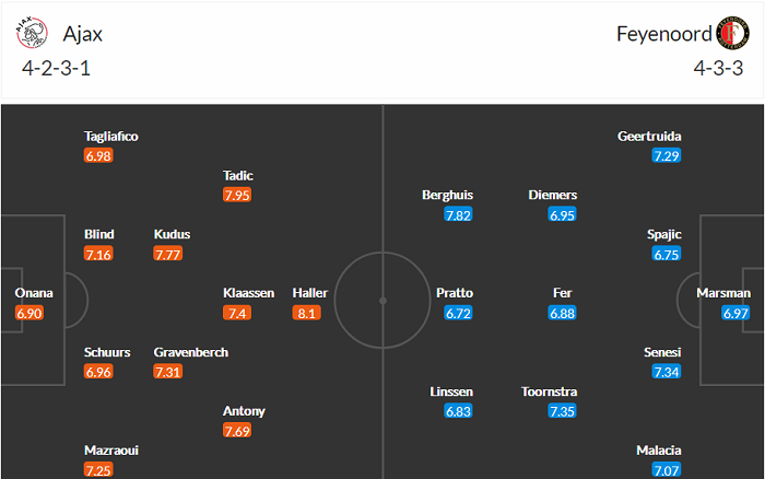Đội hình dự kiến Ajax vs Feyenoord