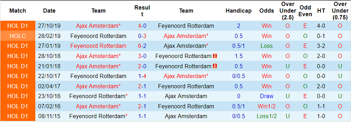 Thật vậy, Ajax vẫn duy trì được thành tích ấn tượng trên sân nhà. Họ thắng tới 6/8 trận sân nhà thuộc khuôn khổ giải VĐQG Hà Lan mùa này. Bên cạnh đó, Ajax những mùa gần đây thường xuyên có được niềm vui khi so tài cùng Feyenoord. Họ thắng 5/6 lần so tài gần nhất với Feyenoord, tính trên mọi đấu trường.