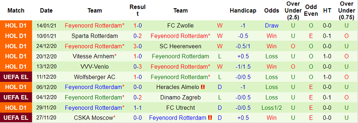 - Thống kê 10 trận gần nhất của Feyenoord