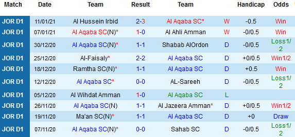 + Thống kê 10 trận gần nhất của Al Aqaba