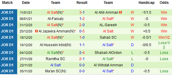 + Thống kê 10 trận gần nhất của Al Salt