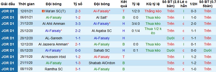 + Thống kê 10 trận gần nhất của Al Faisaly