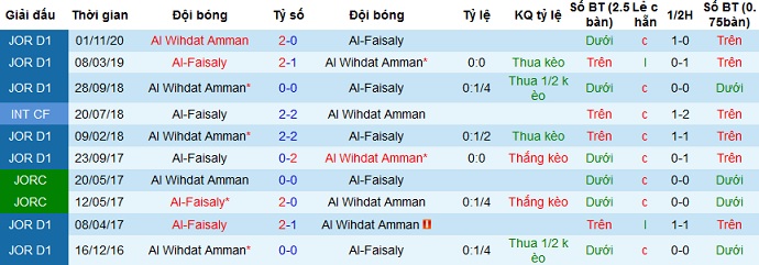 + Lịch sử đối đầu Al Faisaly vs Al Wihdat