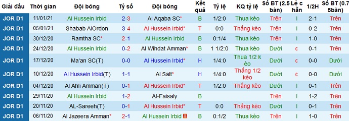 + Thống kê 10 trận gần nhất của Al Hussein