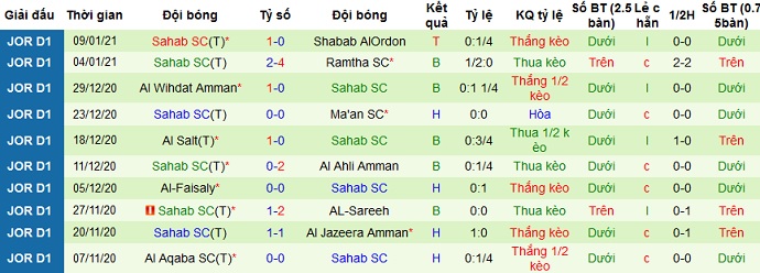Sau 7 trận chỉ toàn hòa và thua, mới đây Sahab cũng có được chiến thắng trên sân nhà trước Shabab Al Ordon với tỷ số 1-0. Tuy nhiên trên sân khách thành tích của Sahab vẫn khá tệ với 3 trận hòa và 2 trận thua ở 5 lần du đấu gần đây.