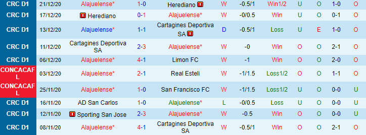 + Thống kê 10 trận gần nhất của Alajuelense