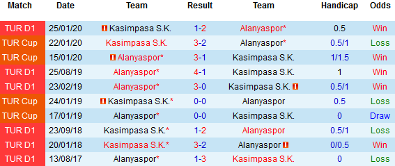 Trên sàn giao dịch châu Á cũng chứng kiến thành tích đáng hy vọng mà Alanyaspor thể hiện khi họ đã có 52.94% số trận mang lại niềm vui cho giới đầu tư. Nhiều hơn đáng kể so với Kasımpasa mới có 37.5% số trận vượt qua tỷ lệ.