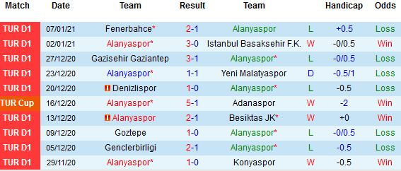+ Thống kê 10 trận gần nhất của Alanyaspor