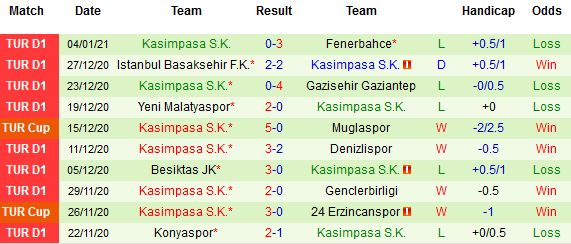+ Thống kê 10 trận gần nhất của Kasımpasa