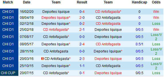 + Lịch sử đối đầu Antofagasta vs Deportes Iquique