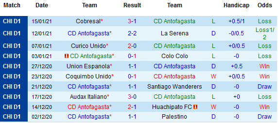 + Thống kê 10 trận gần nhất của Antofagasta