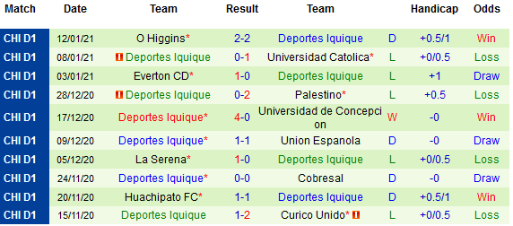 + Soi tỷ lệ kèo châu Á: Từ đầu mùa, Deportes Iquique mới tích lũy được 40.74% số trận thắng theo tỷ lệ châu Á. Trên sân kháhc, Deportes Iquique chỉ biết đến hòa và thua kể từ tháng 11 năm ngoái trở lại đây.
