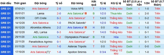 + Thống kê 10 trận gần nhất của Aris