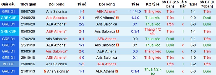 + Lịch sử đối đầu Aris vs AEK Athens
