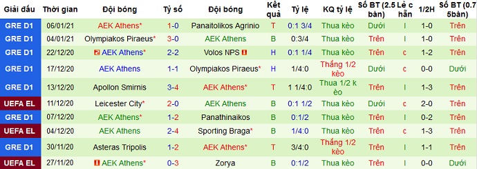 + Thống kê 10 trận gần nhất của AEK Athens
