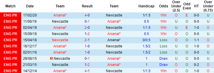 + Lịch sử đối đầu Arsenal vs Newcastle