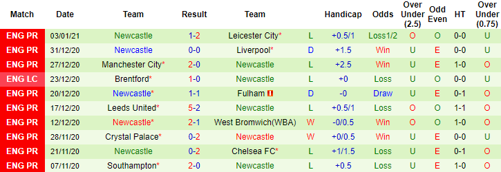 + Thống kê 10 trận gần nhất của Newcastle