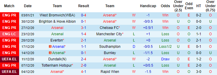 + Thống kê 10 trận gần nhất của Arsenal