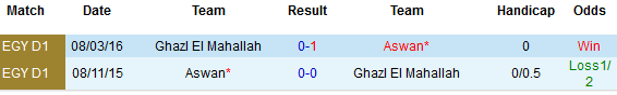 + Lịch sử đối đầu Aswan vs Ghazl El Mehalla