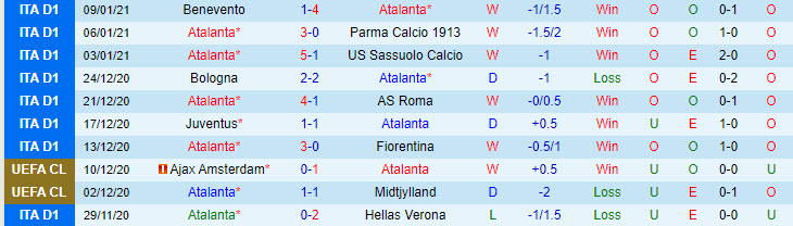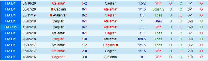 Phong độ và thống kê đối đầu Atalanta - Cagliari gần đây:
