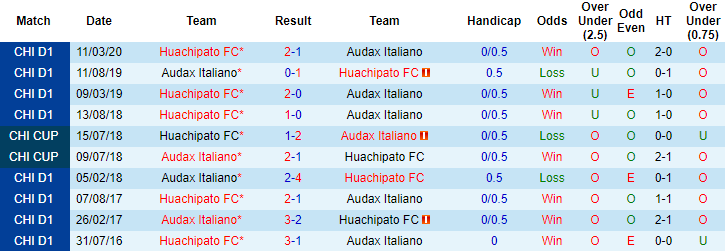 Audax Italiano với số trận tương tự mới giành được 33 điểm, xếp ở vị trí thứ 14. Tuy nhiên điều đáng bàn là ở trận đối đầu sắp tới Audax Italiano vẫn được tin tưởng vào khả năng đánh bại Huachipato. Audax Italiano cho thấy phong độ khởi sắc với chuỗi 3 trận liên tiếp bất bại gần đây.