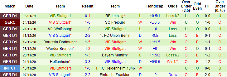 + Thống kê 10 trận gần nhất của Stuttgart