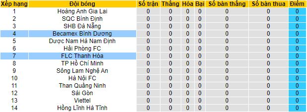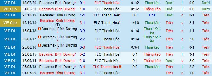 + Lịch sử đối đầu B.Bình Dương vs Thanh Hóa