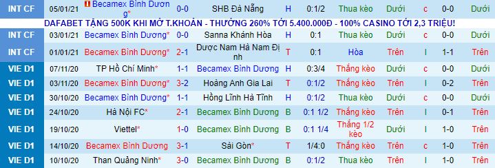 + Thống kê 10 trận gần nhất của B.Bình Dương