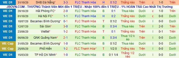+ Thống kê 10 trận gần nhất của Thanh Hóa