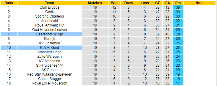 Nhìn vào hoàn cảnh hiện tại, Beerschot Wilrijk có thể bị đánh bật khỏi vị trí thứ 7 – vị trí được tham dự Europa League mùa tới, nếu để thua ở trận đối đầu trực tiếp Gent đêm nay. Công bằng, dù được chơi trên sân nhà song với phong độ hiện tại, kịch bản trên xảy ra là rất lớn.