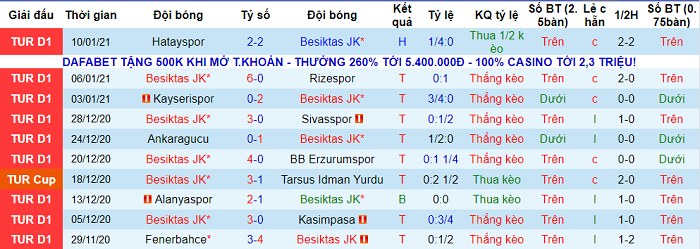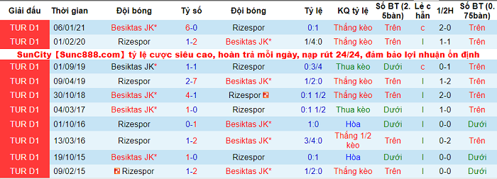 Phong độ và thống kê đối đầu Besiktas - Rizespor gần đây