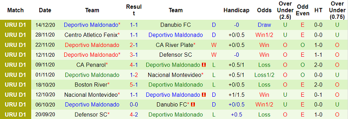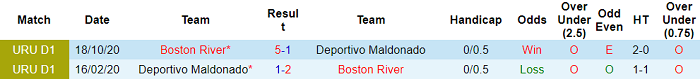 Deportivo Maldonado bất bại cả 4 trận gần nhất tại giải VĐQG Uruguay. Nhưng làm khách trước Boston River vẫn là thách thức mà Deportivo Maldonado khó vượt qua. Nên nhớ Deportivo Maldonado toàn thua cả 3 lần so tài cùng Boston River trên sân của đối thủ này.