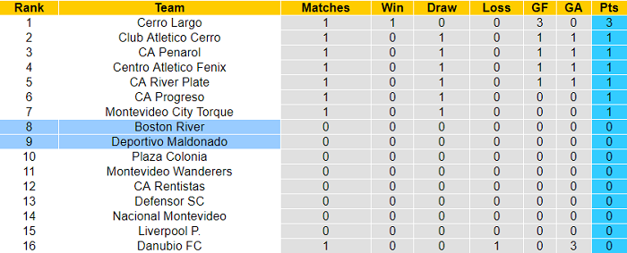 Giải VĐQG Uruguay mùa 2020 đã bước sang giai đoạn Clausura. Màn so tài vào rạng sáng thứ Ba (19/1) theo giờ Việt Nam là trận đấu đầu tiên của Boston River lẫn Deportivo Maldonado ở giai đoạn này.