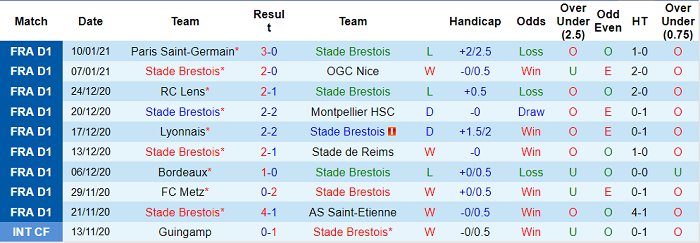 Lý do: Brest thường giành những kết quả tích cực khi được thi đấu trên sân nhà. Họ bất bại cả 5 trận sân nhà vừa qua thuộc khuôn khổ Ligue 1 và thắng tới 4 trong số đó. Phần lớn điểm số mà Brest có được tới từ các trận đấu diễn ra trên sân nhà: 19/26 điểm.