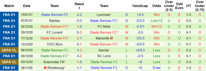 Trên bảng xếp hạng Ligue 1 mùa 2020/21, Rennes hơn Brest tới 7 điểm trước giờ bóng lăn. Nhưng Brest đủ khả năng khiến Rennes phải chia điểm vào Chủ nhật (17/1).