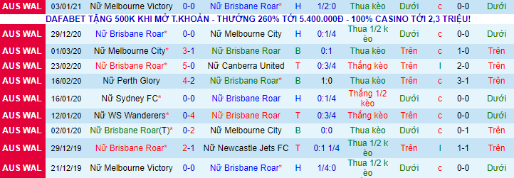 + Lịch sử đối đầu Brisbane Roar (W) vs Canberra Utd (W)