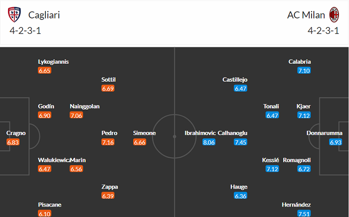 Dự đoán tỷ số Cagliari 1-3 AC Milan
