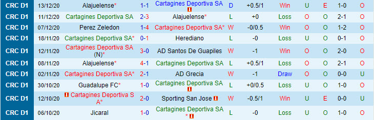 Cartagines kết thúc lượt đi giải VĐQG Costa Rica 2020/21 đầy ấn tượng khi đứng ở vị trí thứ 2 bảng B, qua đó có vé tham dự vòng bán kết tranh vô địch lượt đi Apertura. Thực tế, Cartagines vẫn duy trì được phong độ ổn định và họ chỉ chịu thua Alajuelense (đội bóng sau đó vô địch) với tỷ số 4-3 sau 2 lượt trận.